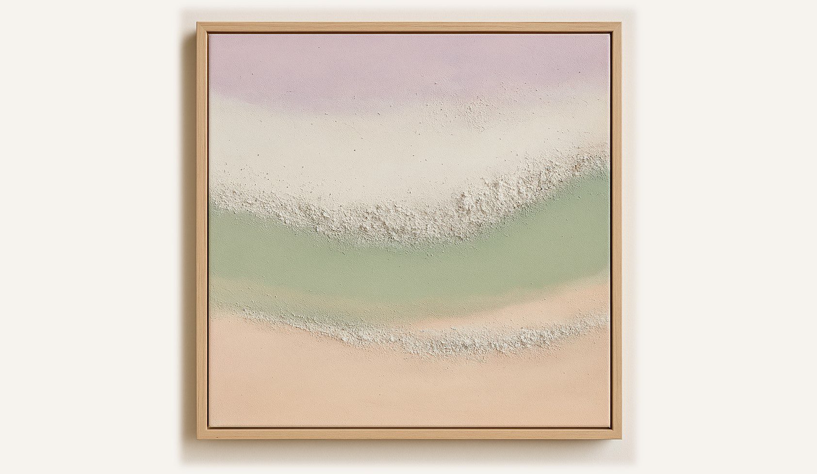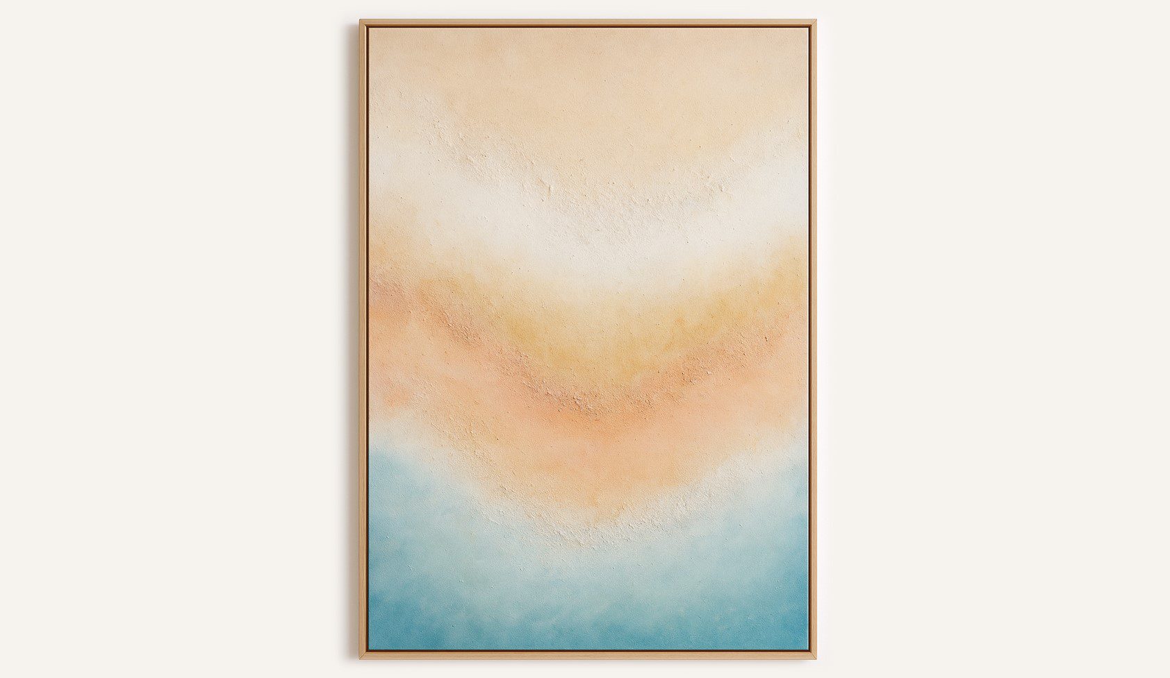 Degradados pastel y textura arenosa que transmiten calma y equilibrio. Una obra elegante ideal para espacios luminosos.