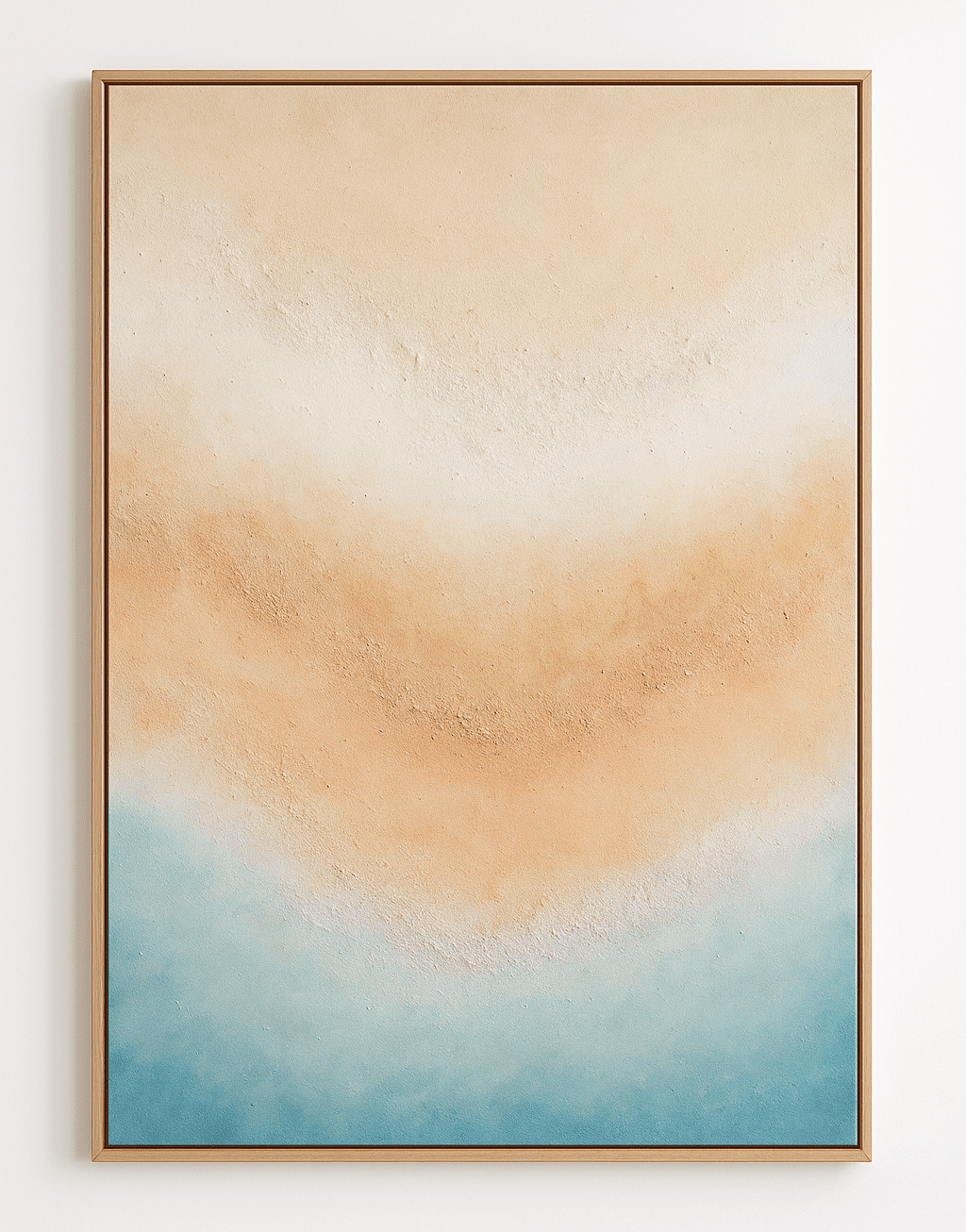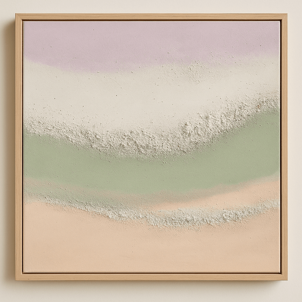 Degradados pastel y textura arenosa que transmiten calma y equilibrio. Una obra elegante ideal para espacios luminosos.