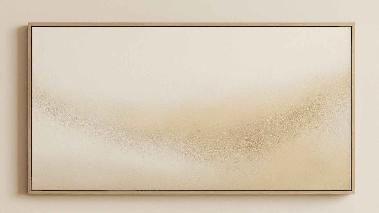 Textura suave con degradados en blanco, beige y dorado tenue. Evoca la calidez de la arena bajo una luz dorada.