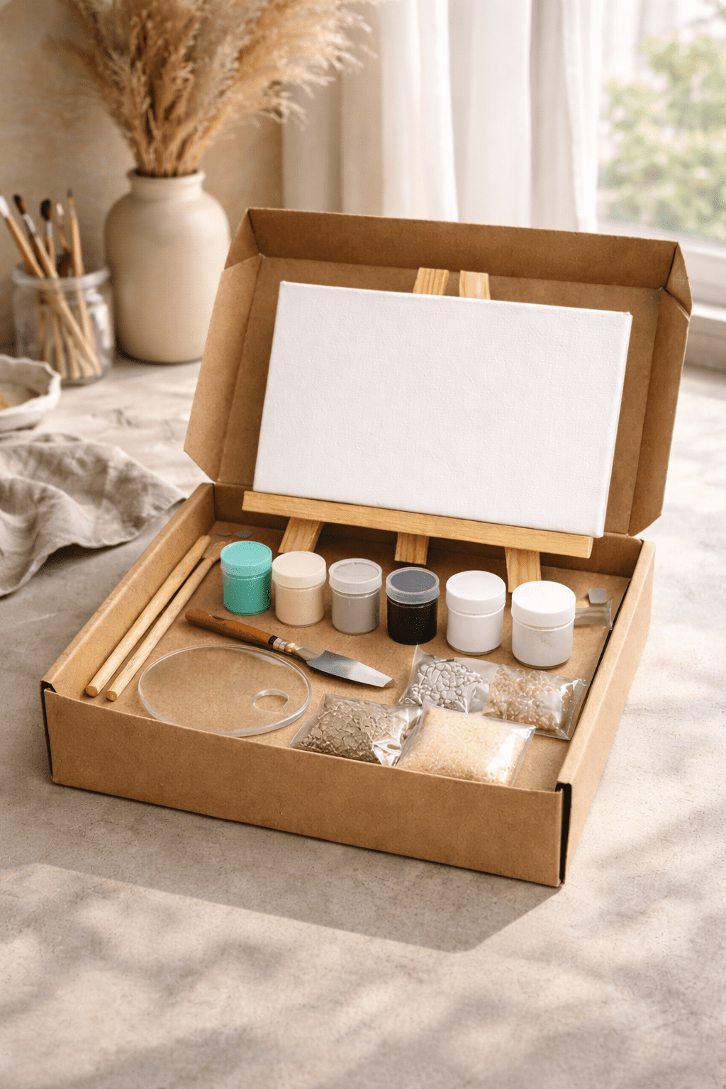 El kit Costa combina tonos suaves y luminosos que recuerdan al reflejo del sol sobre el mar, a la calma de una mañana junto a la orilla. Incluye todo lo necesario para crear tu propia pieza de arte matérico, con texturas que evocan arena fina, espuma y horizontes claros.